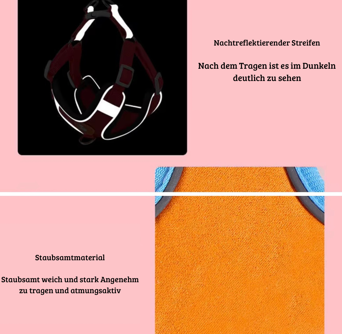 Gefertigt aus besonders angenehmem Stoff, schmiegt sich das Geschirr sanft an den Körper deines Lieblings an. Das luftdurchlässige Material sorgt für ein angenehmes Tragegefühl, auch bei wärmeren Temperaturen oder längeren Spaziergängen.