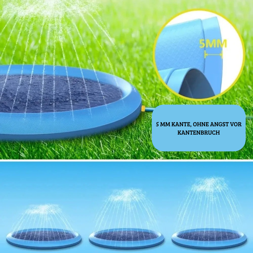 Einfach im Garten ausbreiten, den Wasserschlauch anschließen – und schon beginnt das Vergnügen. Aus dem Rand des runden Wasserpads sprudeln kleine Fontänen, die sanft in die Höhe steigen und zum Spielen einladen. Ihr Hund kann hindurchlaufen, sich darunterlegen oder die spritzenden Strahlen jagen. Dabei wird er nicht nur unterhalten, sondern auch angenehm gekühlt – auf ganz natürliche Weise.