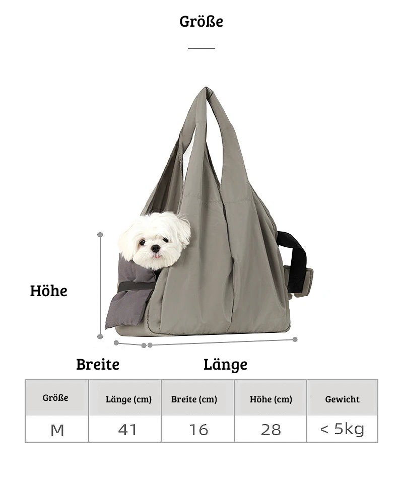 Das weiche, atmungsaktive Material sorgt für ein angenehmes Tragegefühl – für dich und dein Haustier. Der breite Schultergurt ist gepolstert und verteilt das Gewicht gleichmäßig, damit du auch bei längeren Strecken keine Schmerzen bekommst. Eine integrierte Sicherungsleine im Inneren verhindert, dass dein Tier herausspringt.