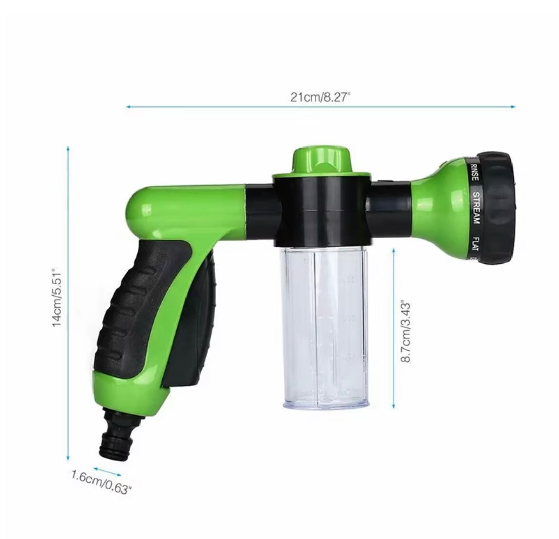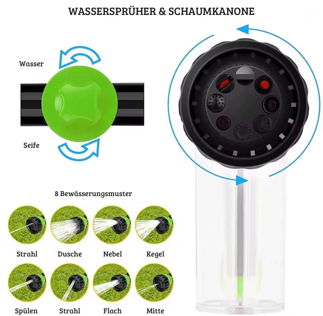 ✔ Integrierter Seifenbehälter: Mische Wasser und Shampoo direkt in der Düse für eine schnelle und gleichmäßige Verteilung.
