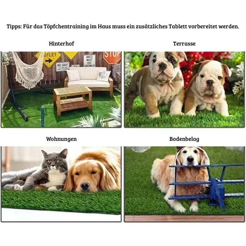 Wir haben die Toilette als Teil unseres Stubenreinheitstrainings genutzt. Der Welpe hat sie direkt verstanden. Ich finde super, dass sich nichts aufsaugt – die Flüssigkeit läuft ab, und das Gras trocknet schnell. Sehr hygienisch!