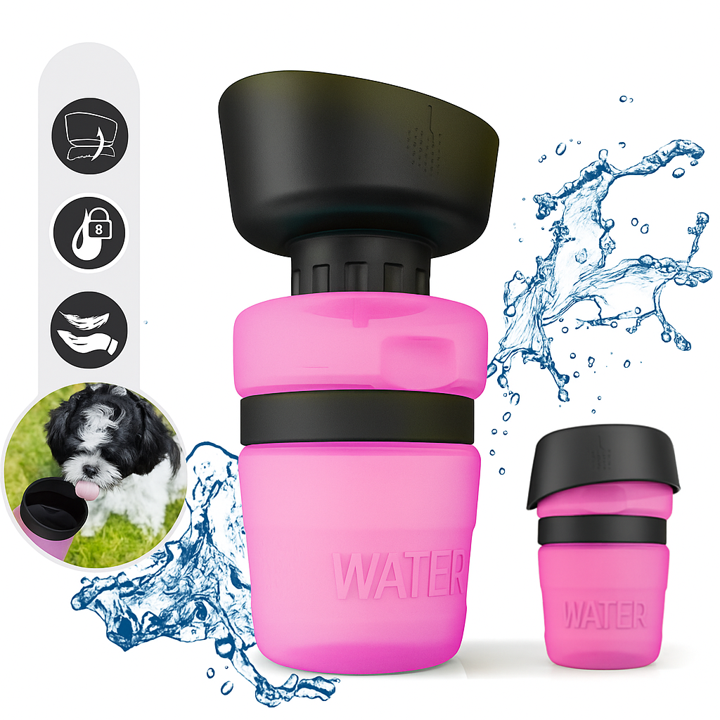 Stell Dir vor: Der Rucksack ist gepackt, Leine in der Hand, Dein Hund wartet vor der Tür. Unterwegs hältst Du kurz an, entfaltest die Flasche, füllst Wasser ein, gibst es Deinem Freund – keine schweren Behälter, kein Umgießen – einfach direkt aus der Flasche trinken. Wenn das Gefäß leer ist oder nicht gebraucht wird, klappst Du es zusammen und verstaut es flach im Rucksack oder der Jackentasche. Eine perfekte Lösung für Alltag, Ausflug und Transport.