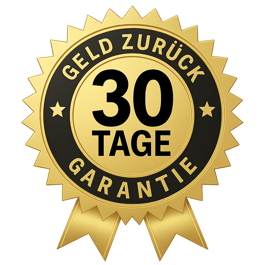 Deshalb bieten wir dir mit Stolz eine 30-Tage-Geld-zurück-Garantie an. Sollte unser Produkt deine Erwartungen nicht erfüllen oder du aus irgendeinem Grund nicht zufrieden sein, kannst du es einfach innerhalb von 30 Tagen zurückschicken – und erhältst den vollen Kaufpreis zurück. Ganz unkompliziert und risikofrei.
