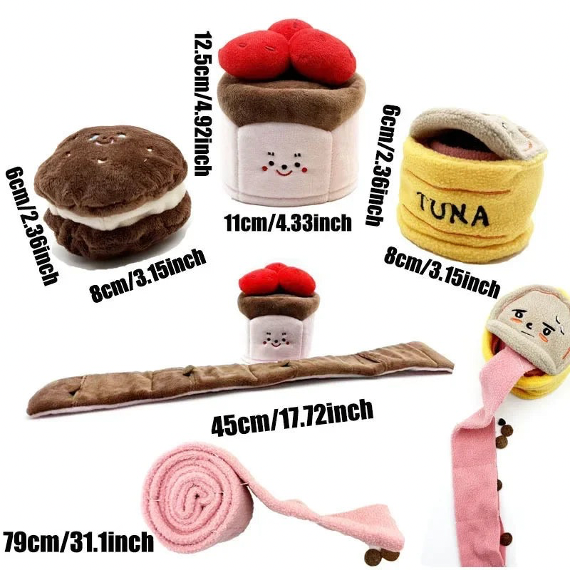 Langeweile war gestern! Dieses kuschelige Versteckspielzeug für Leckerlis kombiniert Spielspaß mit einer spannenden Herausforderung für deinen Vierbeiner. Das weiche Plüschdesign in süßen Lebensmittel-Formen wie Erdbeeren, Kuchen oder Keksdosen sorgt nicht nur für ein niedliches Aussehen, sondern auch für geistige Stimulation und Beschäftigung.