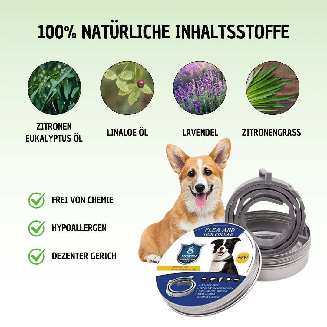 Ob bei Spaziergängen im Wald, auf Wiesen oder im eigenen Garten – Parasiten lauern überall. Mit unserem Anti-Zecken Halsband musst du dir darüber keine Sorgen mehr machen. Das Halsband gibt über mehrere Monate hinweg natürliche Wirkstoffe gleichmäßig ab, die Zecken, Flöhe und andere Parasiten zuverlässig fernhalten. So bleibt dein Liebling ungestört und gesund.