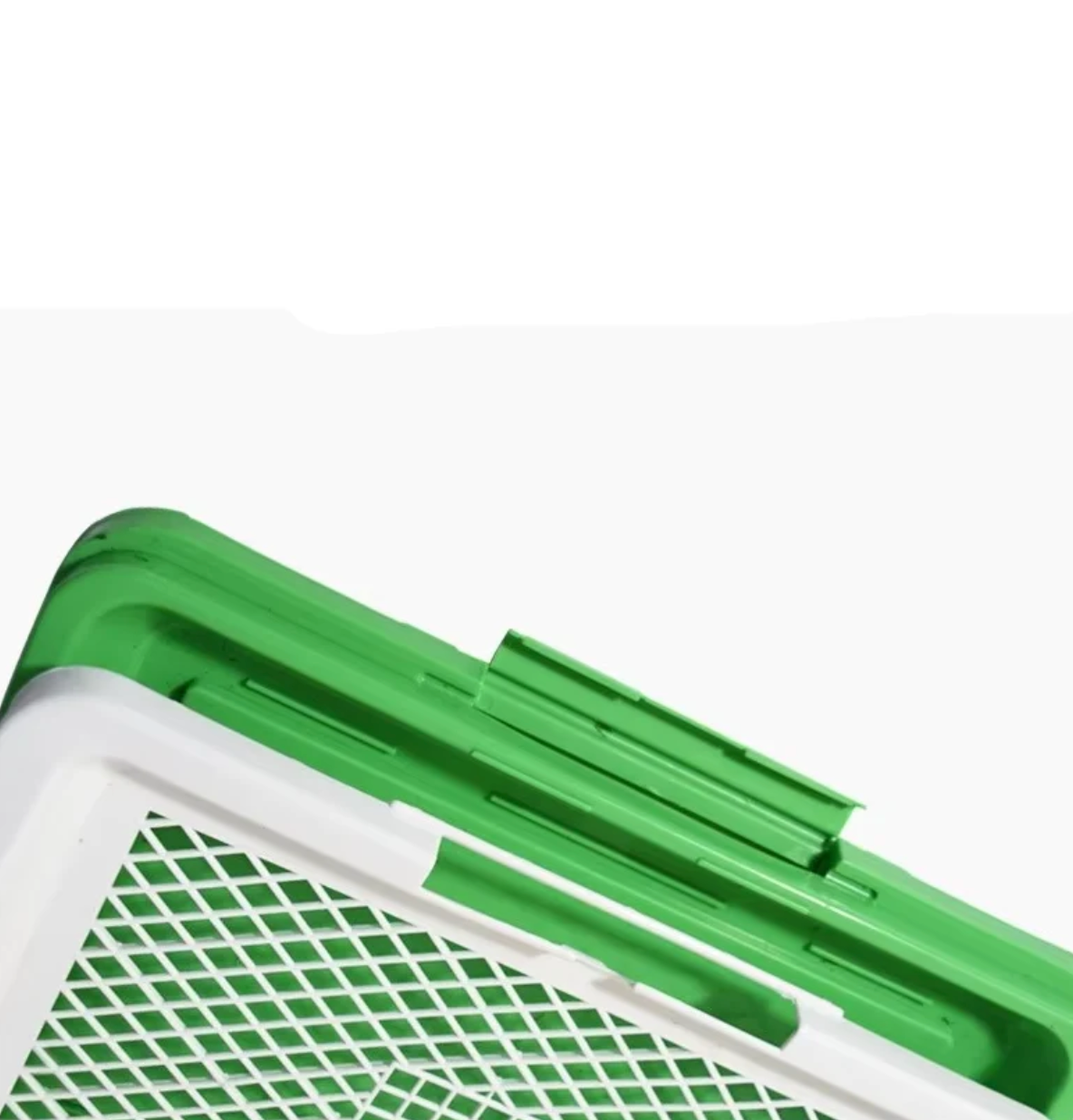 Die Oberfläche ist mit hochwertigem Kunstrasen ausgestattet, der aussieht wie echtes Gras und sich angenehm anfühlt – so fühlt sich Dein Hund vertraut, ohne echtes Außenrasen. Darunter liegt eine praktische Konstruktion, die Urin und Flüssigkeit gezielt in eine Sammelschale ableitet und so verhindert, dass Flüssigkeit nach außen gelangt. Gleichzeitig sorgt die rutschfeste Unterlage dafür, dass die ganze Einheit stabil an ihrem Platz bleibt – auch auf glatten Böden.