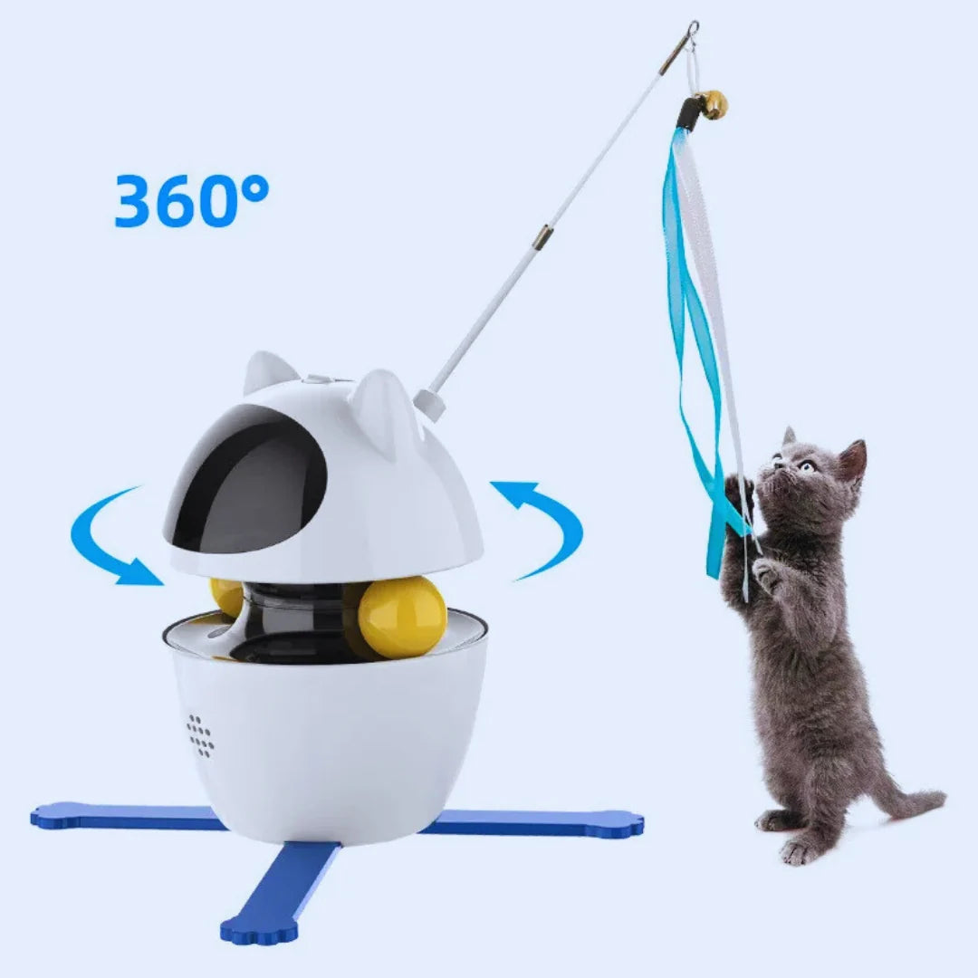 -Roboterfunktion mit Überraschung: „Beute“ erscheint, bewegt sich, verschwindet – Deine Katze bleibt fokussiert.