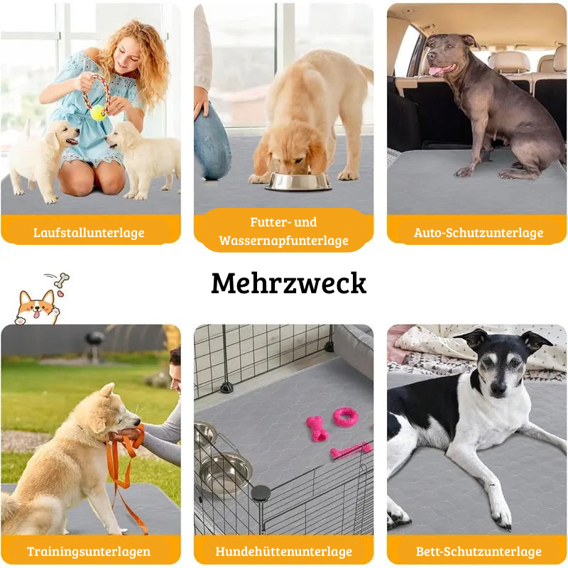 Diese wiederverwendbare Hundematte ist die ideale Lösung für alle Tierhalter, die Wert auf Hygiene, Komfort und Nachhaltigkeit legen. Ob als Trainingsunterlage für Welpen, als Inkontinenzschutz für ältere Hunde oder als praktische Schutzmatte im Auto – diese saugfähige Unterlage sorgt für eine saubere Umgebung.
