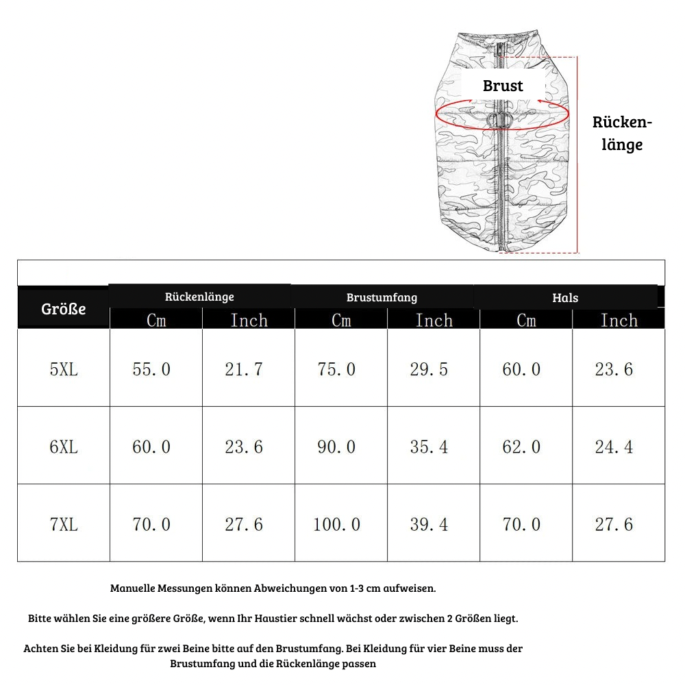 Das moderne Camouflage-Design macht die Jacke nicht nur zum praktischen Begleiter, sondern auch zum Hingucker. Dank des verstellbaren Verschlusses lässt sich die Passform individuell anpassen. Die Jacke ist speziell für große Rassen wie Labradore, Schäferhunde, Golden Retriever oder Huskys konzipiert.